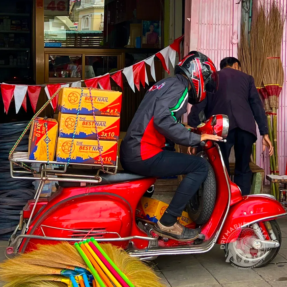 Bangkok measures itself in two-strokes. Walk any soi at 6 a.m., and you'll hear it before you see it—the particular growl of a loaded Vespa working a delivery route.